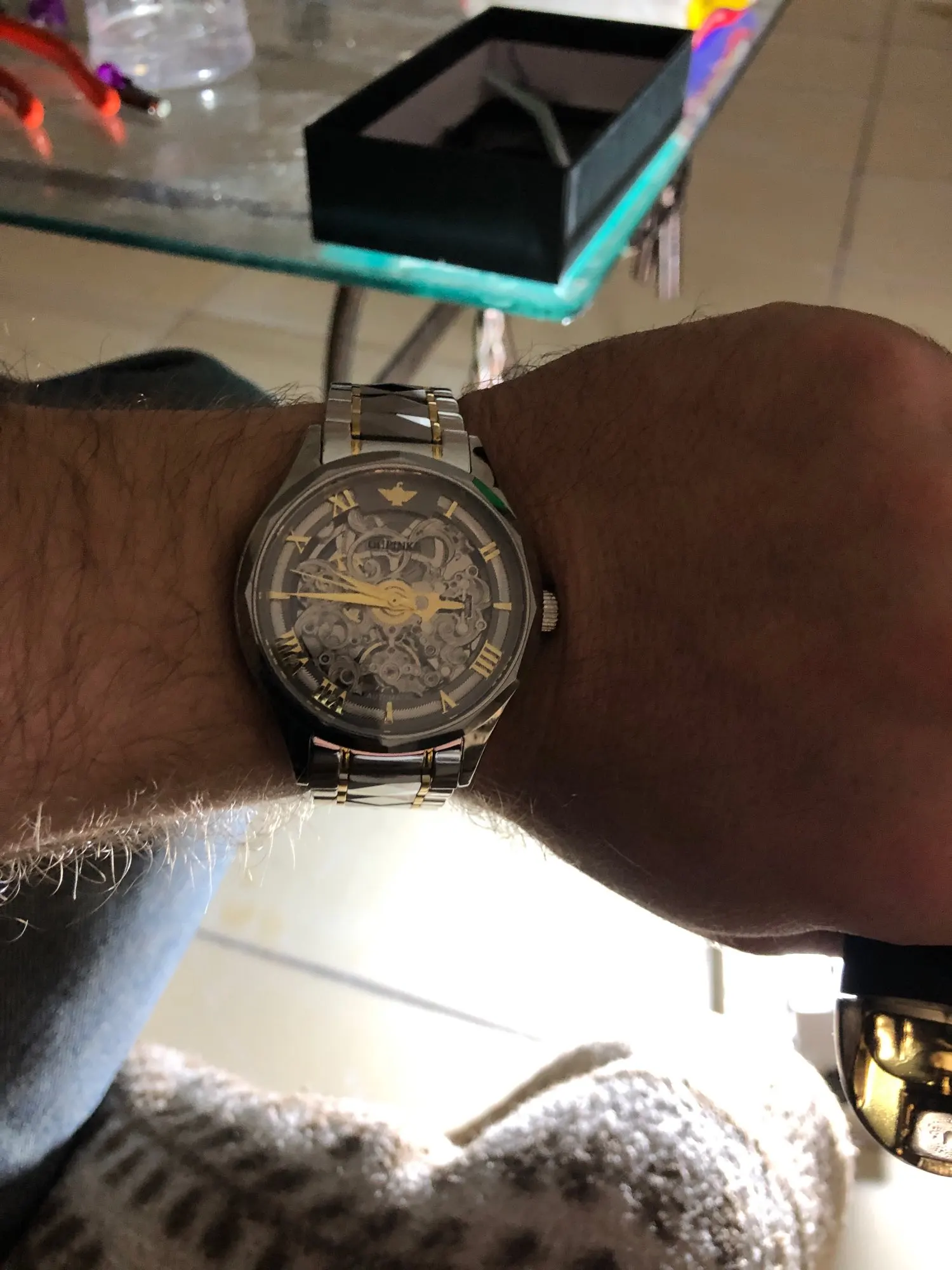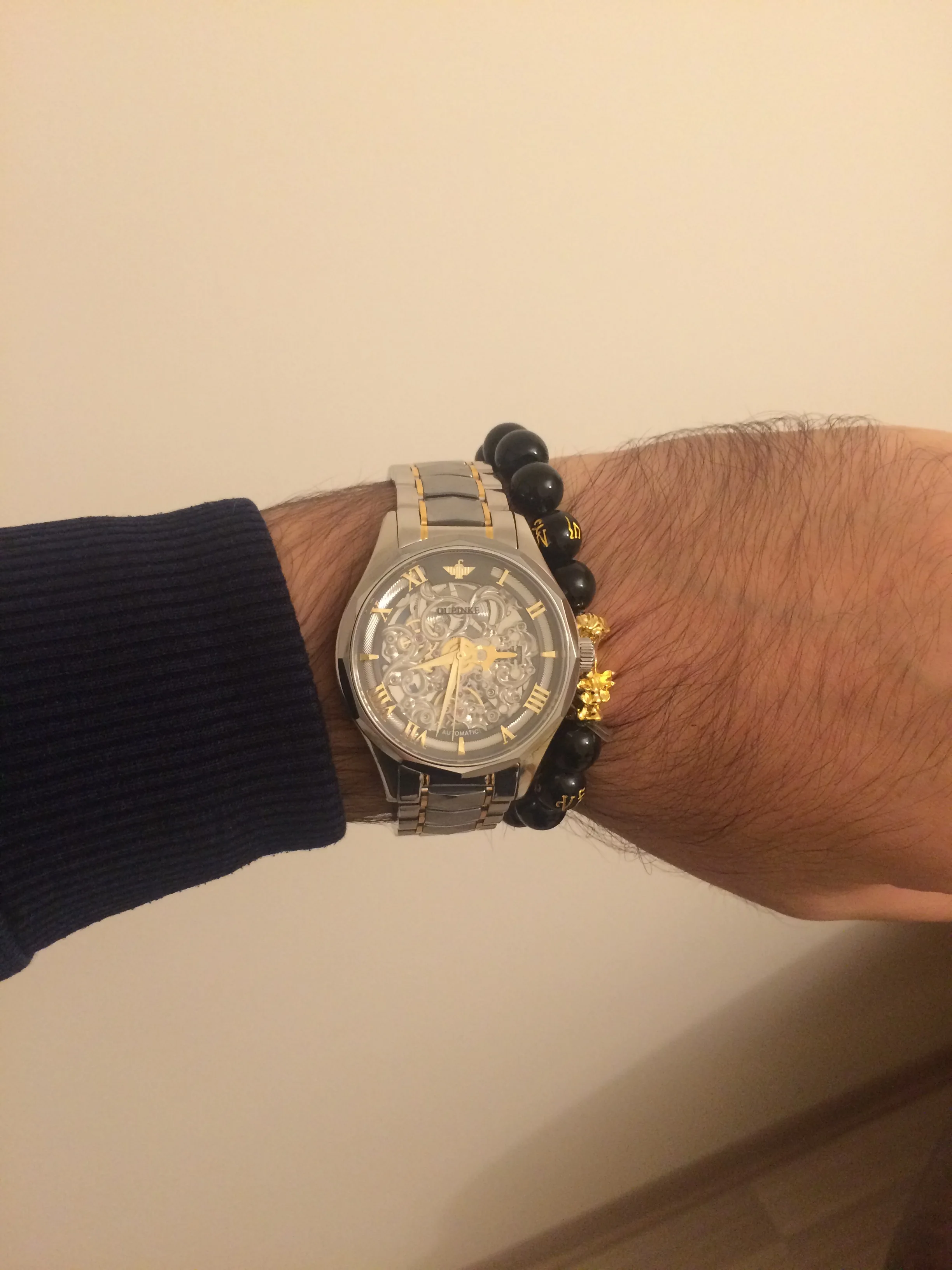 Reloj de pulsera mecánico para hombre, automático, esqueleto, OUPINKE, acero de tungsteno, zafiro, masculino, 3169
