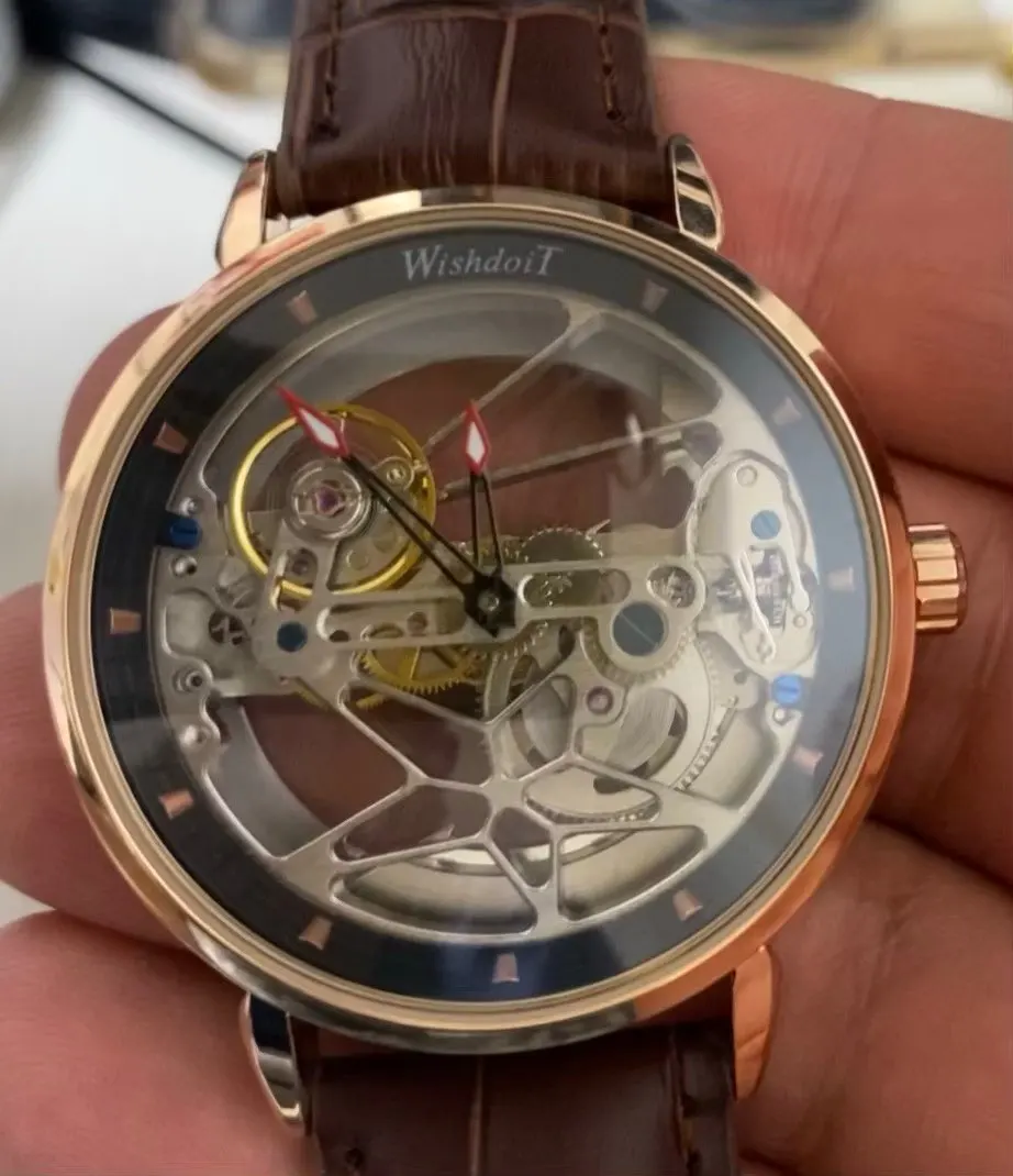 Reloj mecánico automático para hombre, pulsera de cuero de lujo, informal, de moda, Tourbillon, marca, nuevo, 2022