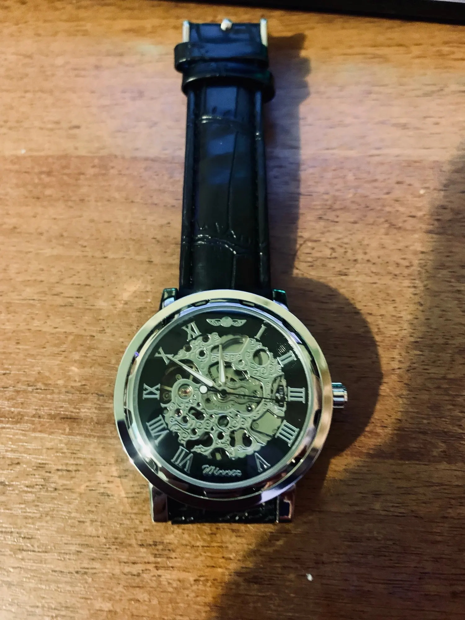 Relojes clásicos de lujo para hombre, pulsera mecánica de cuerda a mano con esqueleto dorado