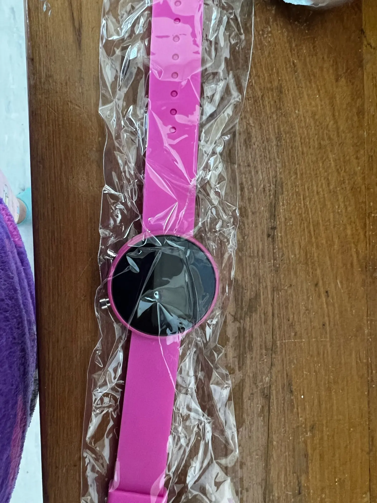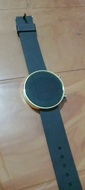 Es igual a la imagen. no es táctil, se pulsa el botón para ver la hora, con la otra perilla se cambia la hora. La correa es firme.