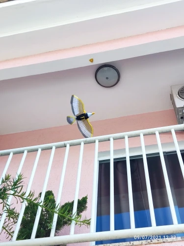 Repelente de pájaros luminoso, águila colgante con música, espantapájaros voladores, decoración de jardín, pájaro volador portátil