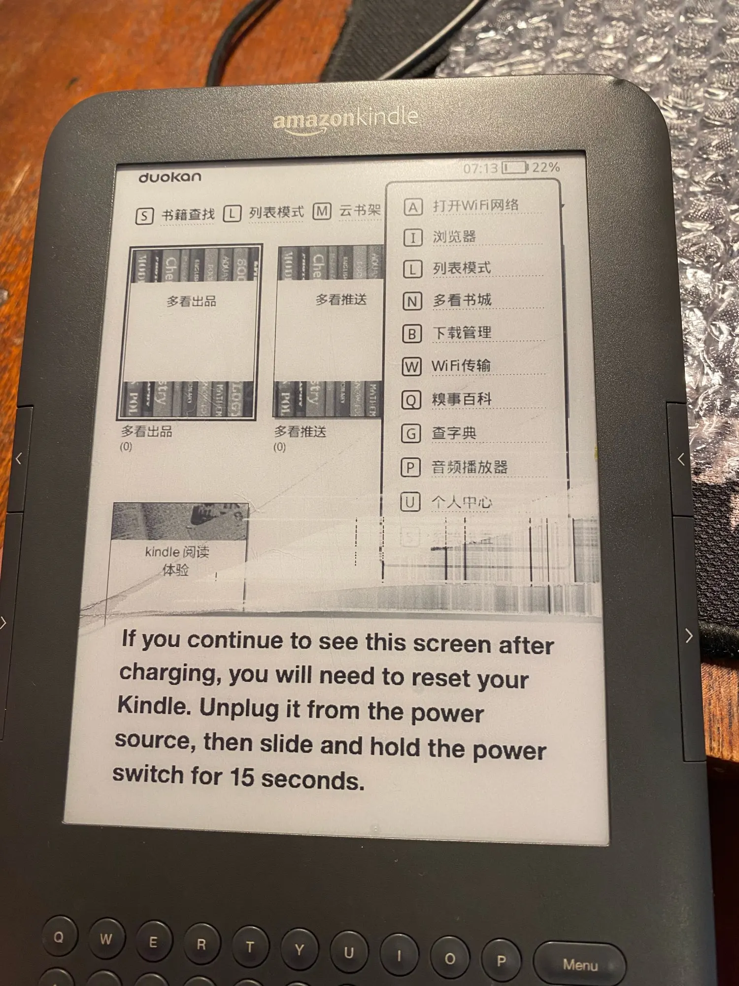 llego en una cajita de corcho blanco y dentro envuelto en papel de burbujas, dentro del plazo, descripcion correcta para kindle 3.