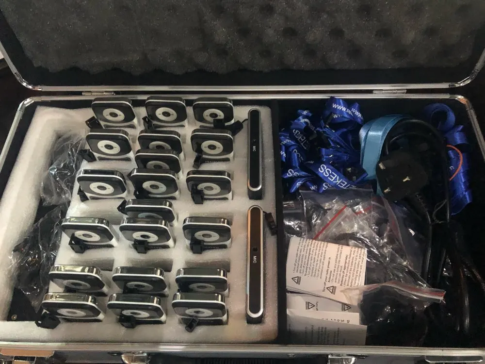 RETEKESS inalámbrico guía sistema 2 transmisores + 20 receptores + 1 funda de carga para la reunión de la iglesia de traducción simultánea