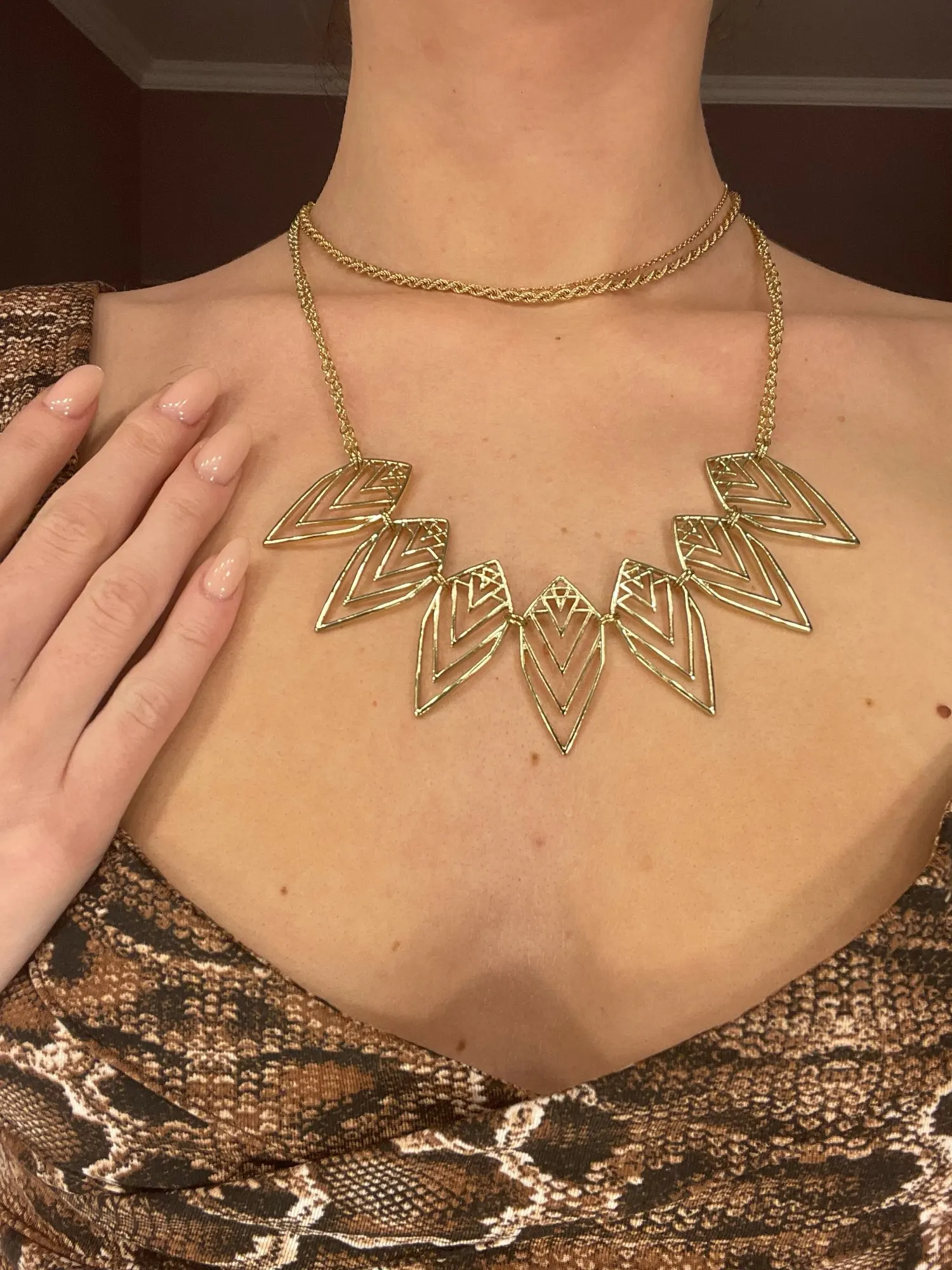 SMe ha encantado totalmente!. Dudaba mucho de si comprar este collar o no, no estaba muy convencida con las fotos que vi y si sería demasiado grande, pero ahora que lo he recibido puedo decir que es mi collar favorito. El tamaño es perfecto. Me encanta. Muchas gracias vendedor!