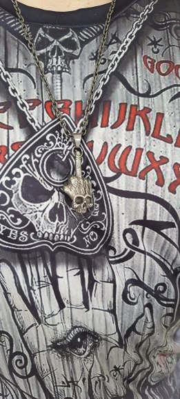 es enorme y lleva una calavera que en la foto no se ve