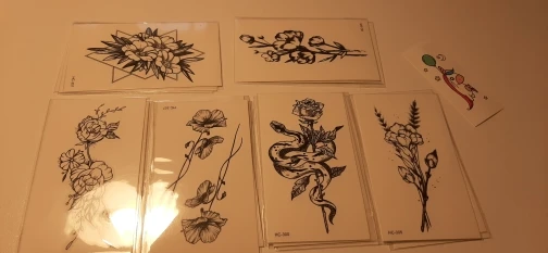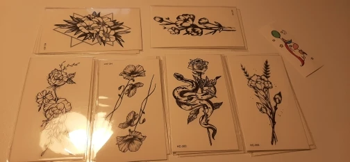 Rocooart-tatuaje falso de serpiente y flores, Tatuajes de conejo, Tatuajes temporales, arte corporal a prueba de agua