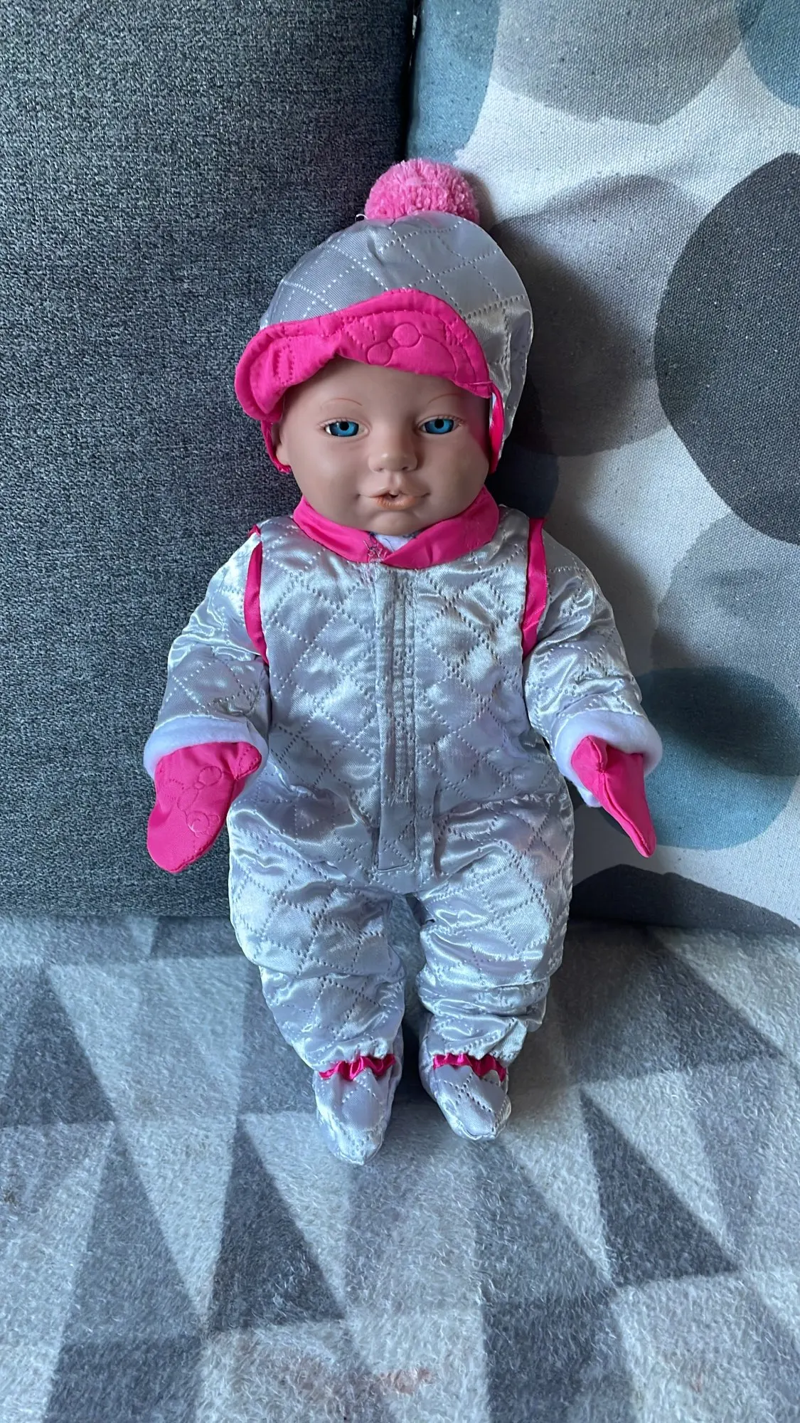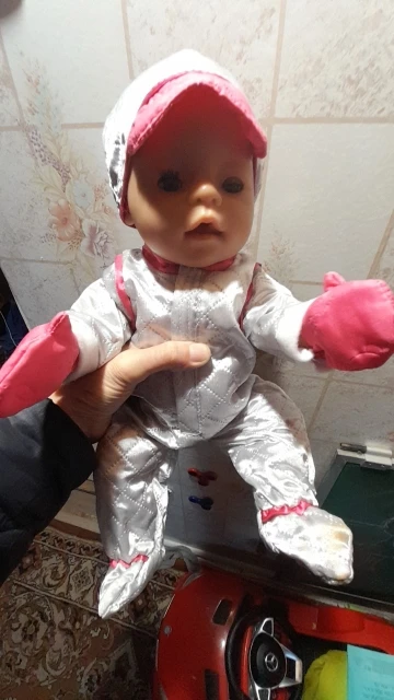 El traje vino descosido en un parte. Se nota mala calidad. La cazodora se le suelta el pelo interior. Muy justo de tamaño para un muñeco de 42 cm.