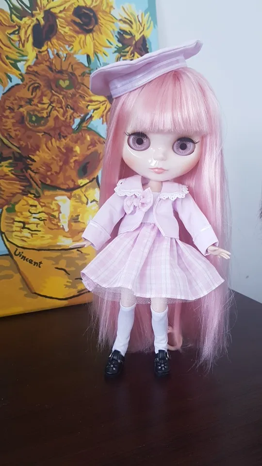 Ropa de muñeca de los días de la Fortuna, Blythe Icy DBS, abrigo rosa, falda a cuadros y sombrero, traje para cuerpo articulado de 1/6 y 30cm