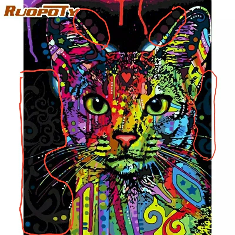 RUOPOTY-pintura por números de gato colorido, Kits de arte de pared moderno abstracto, pintura de imágenes para colorear por números para decoración del hogar