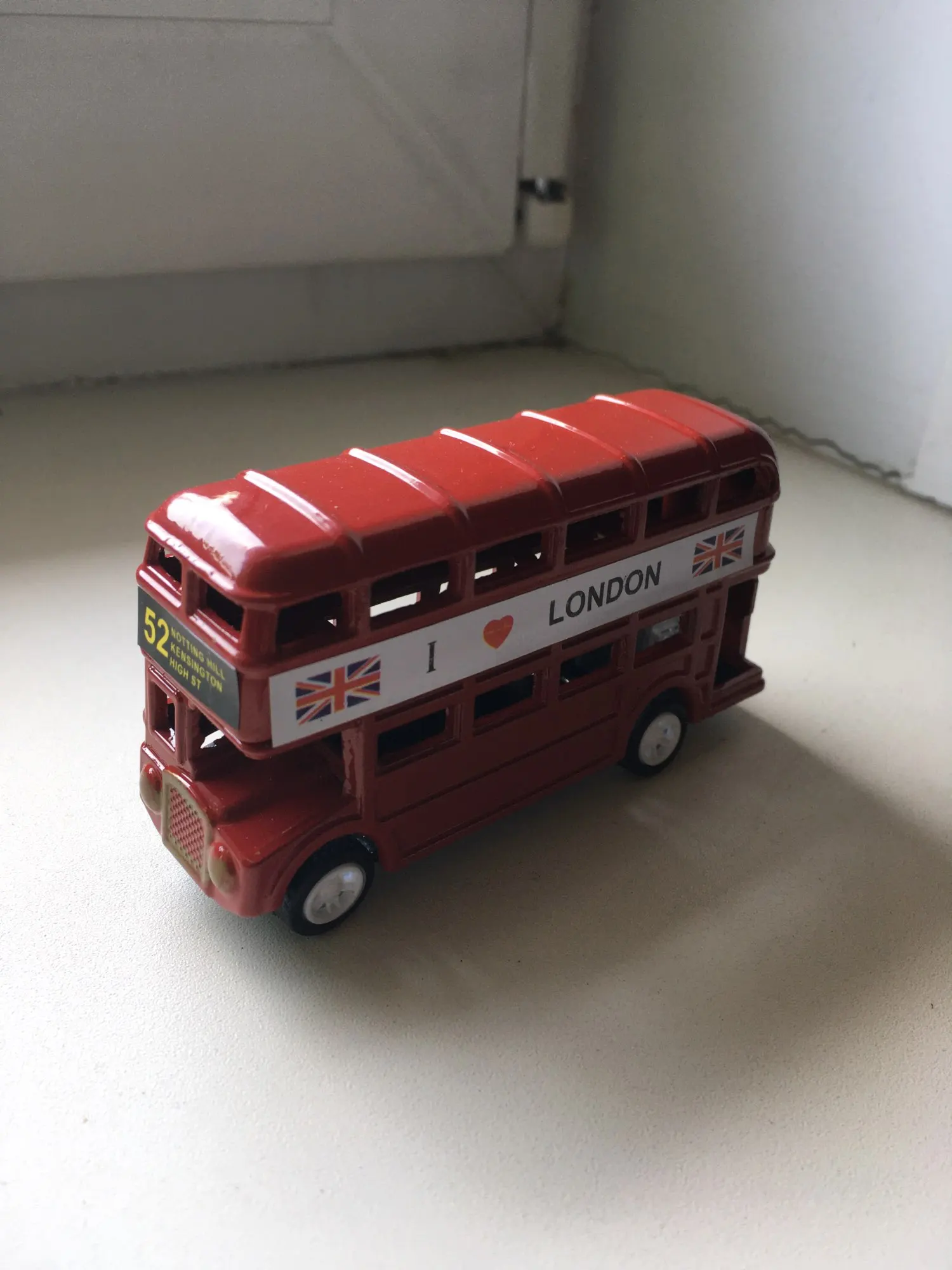 Sacapuntas Vintage británico de Metal para decoración del hogar, modelo de autobús de Europa, en miniatura, rojo y verde, juguete antiguo para niños