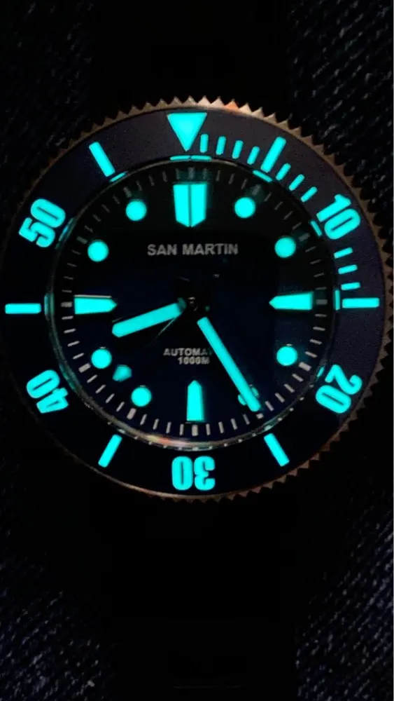 San Martin-reloj mecánico profesional de buceo PT5000, de cristal de zafiro, luminoso, 1000M, resistente al agua, con bisel de cerámica luminoso
