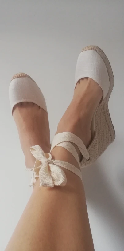 Sandalias con tacón de plataforma y alpargata de verano para mujer, con hebilla en tobillo, correa, Punta cerrada, cordones de goma de encaje