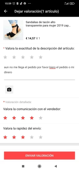Valoración de Aliexpress: