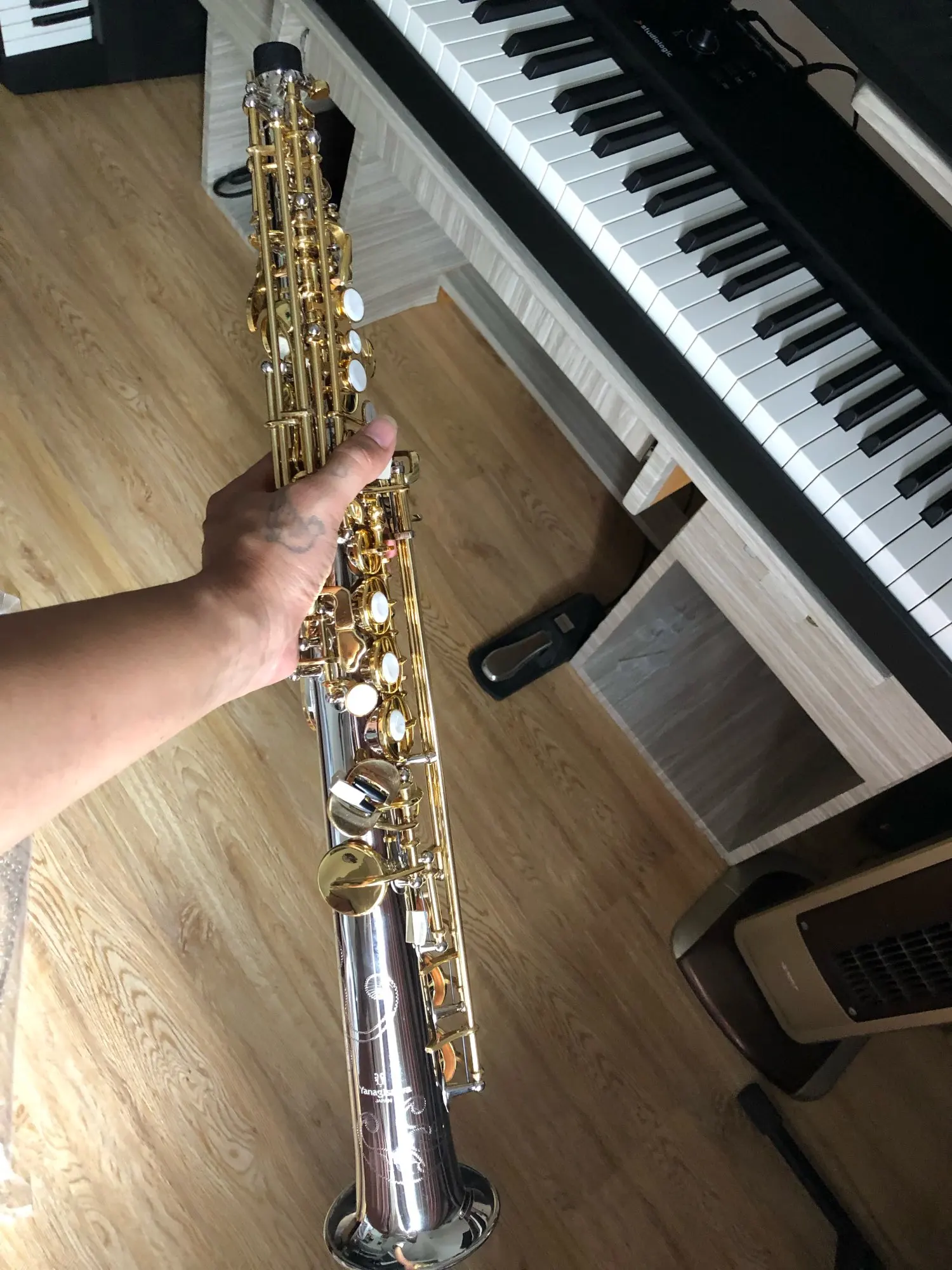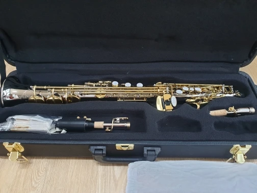Saxofón Soprano Plano B, instrumentos musicales, saxo de latón niquelado plateado con funda profesional, Japón, SS-W037