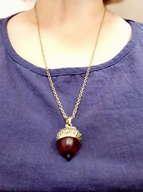 SEDmart Bellota superior colgante collar de oro para las mujeres los hombres de bronce de plata de la gota de vidrio de roble colgante de joyería de cumpleaños GiftSouvenir