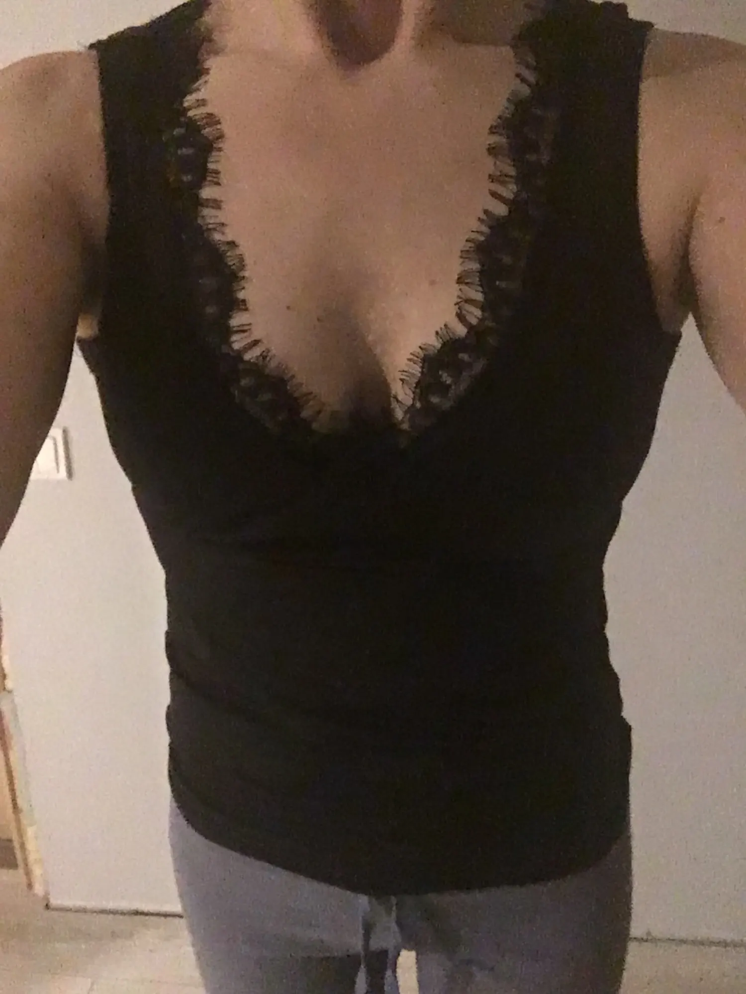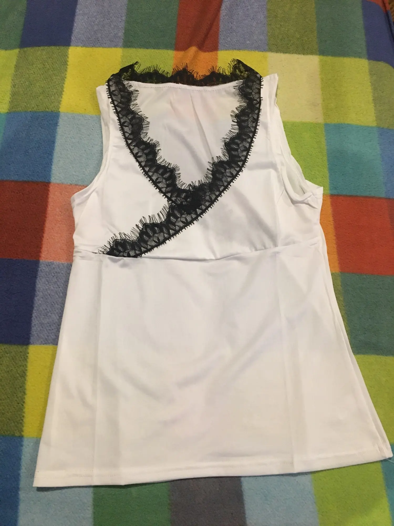 Señoras chaleco Top sin mangas v-cuello Encaje casual Camisetas de tirantes sólido blanco negro verano