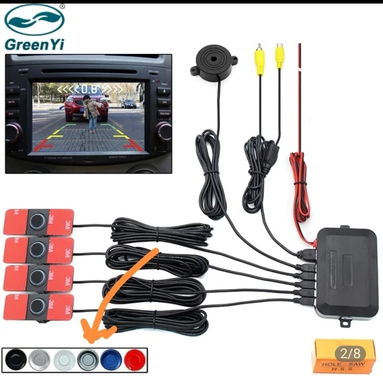 Sensor de aparcamiento de vídeo de coche sistema de Detector de Radar de respaldo inverso 13mm sensores planos originales pueden conectar el Monitor de DVD del coche trasero cámara