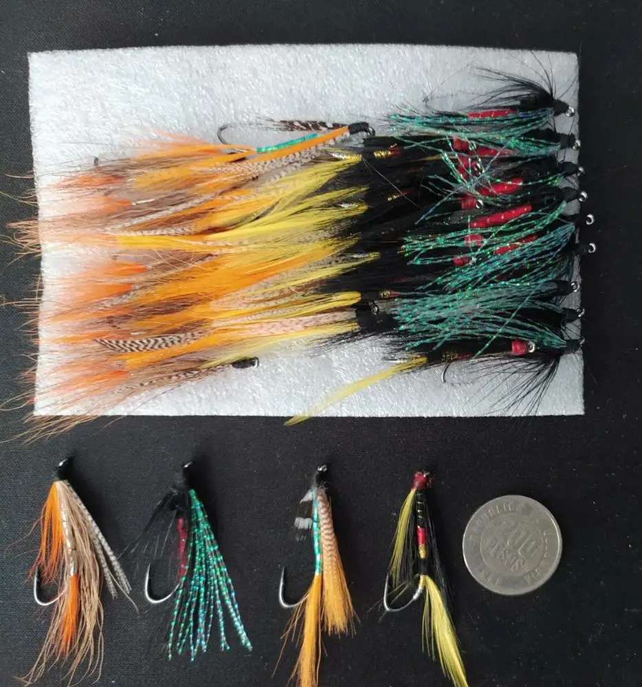 Señuelos de pesca con mosca de trucha, único salmón, negro/naranja, mar, 40 Uds.