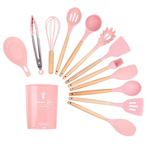 Set de cocina de silicona herramientas de la cocina espátula pala cuchara de sopa con mango de madera especial resistente al calor diseño utensilio 1 Uds