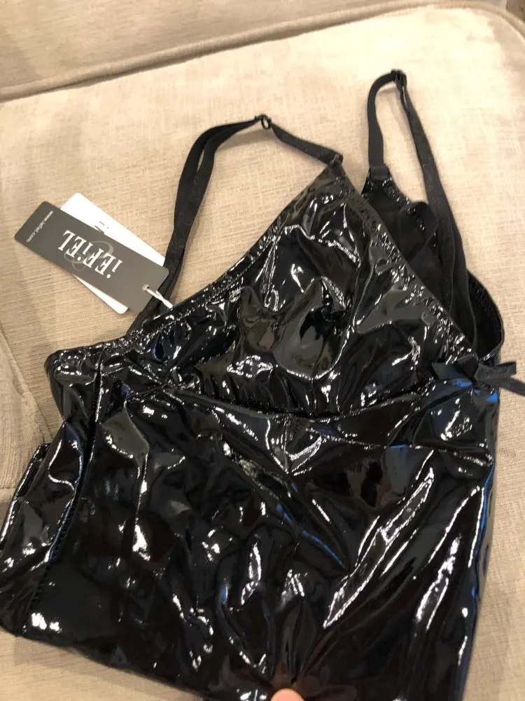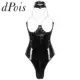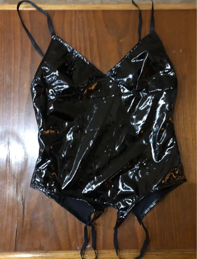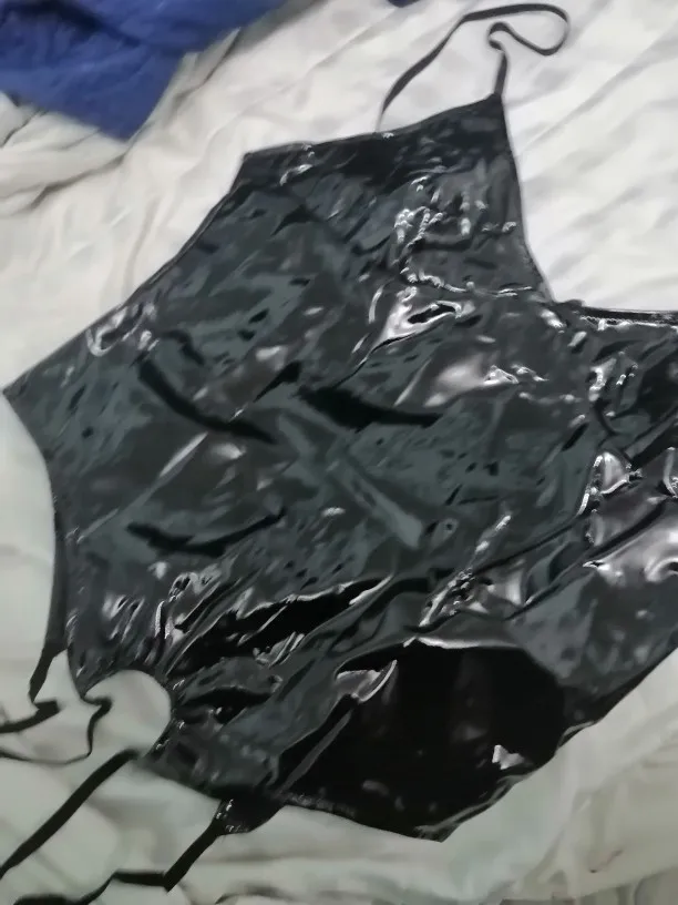 Sexy para mujer de una sola pieza de aspecto mojado de charol Lencería Teddy Bodysuit correas de hombro ajustables cuello pico profundo ropa de dormir sin entrepierna