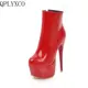 Sexy tacones altos botines de Mujer Zapatos de plataforma de moda de cuero de la PU corto botas blanco rojo fiesta fetiche Zapatos de gran tamaño 45 47