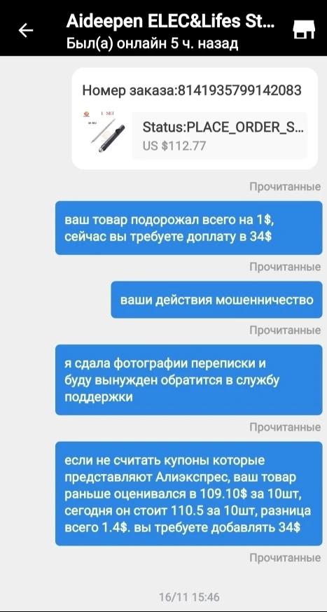 Valoración de Aliexpress: