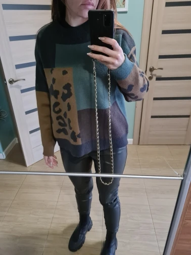 SHENGPALAE-Jersey de manga larga para otoño, Jersey de punto holgado a la moda para mujer, suéter de Color de leopardo, ZA5272, 2022