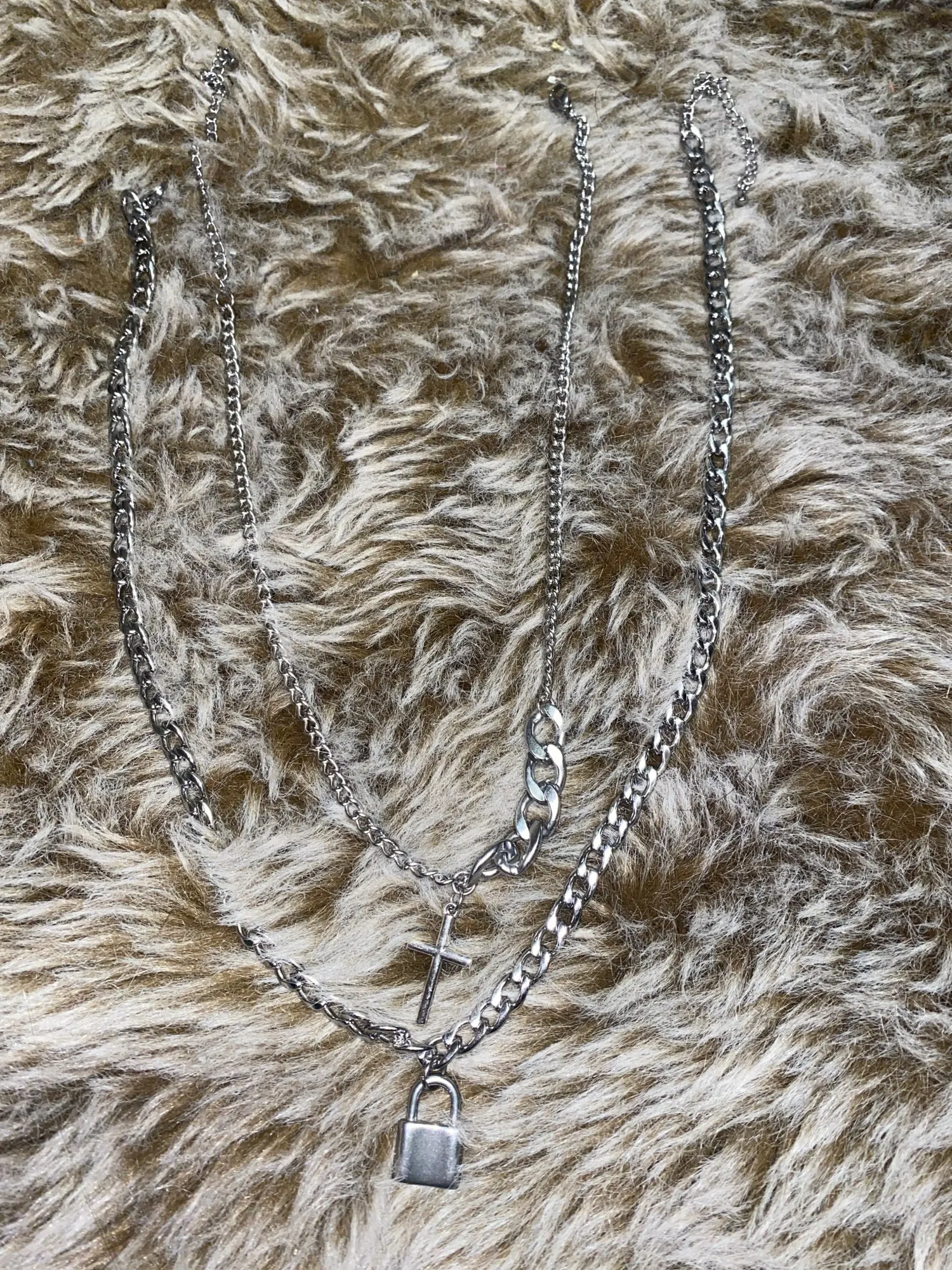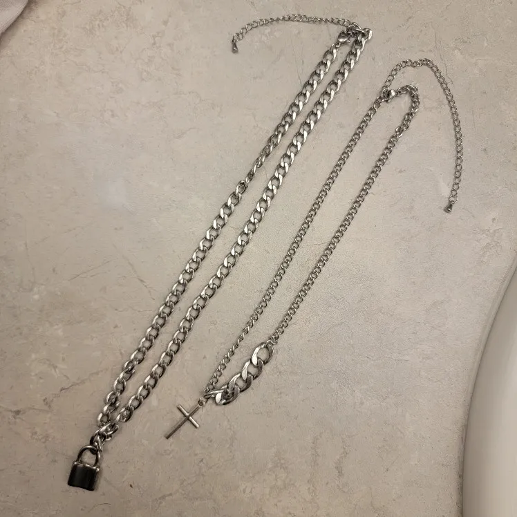 2 Pcs/Set Cross/Lock Pendant Necklace on the Neck