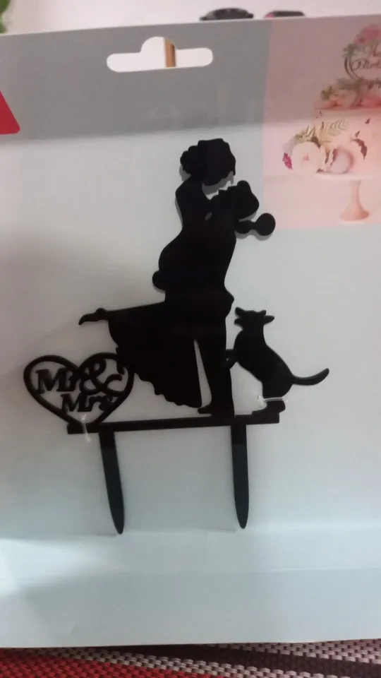 Silueta acrílica negra de varios estilos para novia y novio, con perro, gato, Mr & Mrs, accesorios de decoración de pasteles de boda