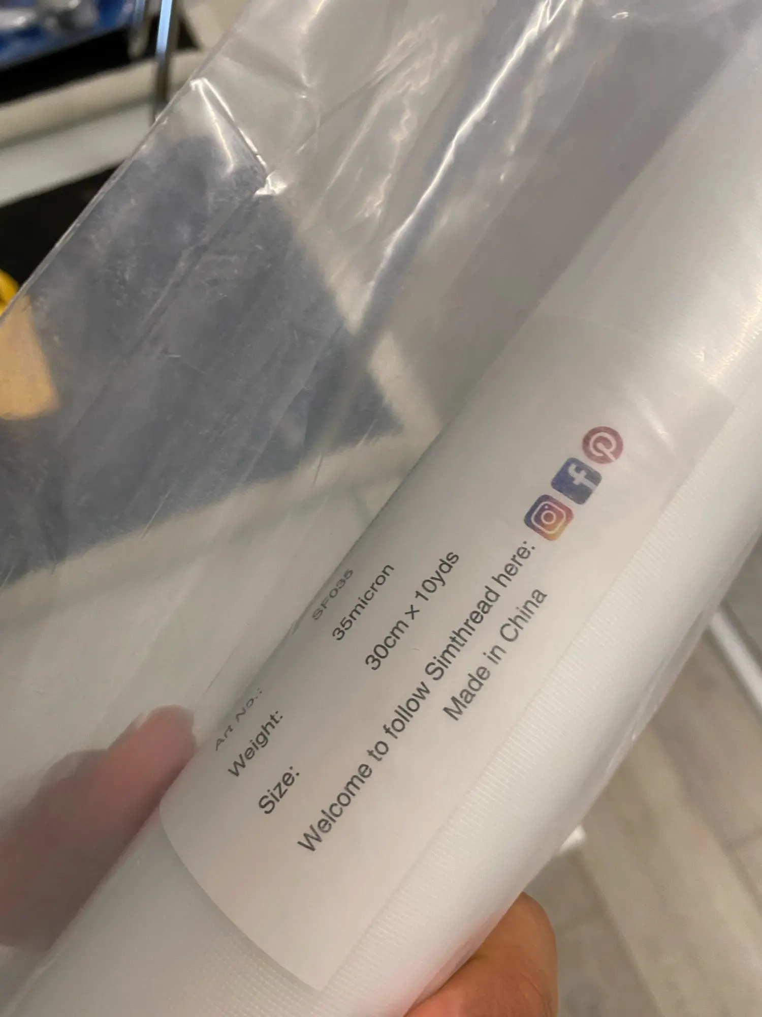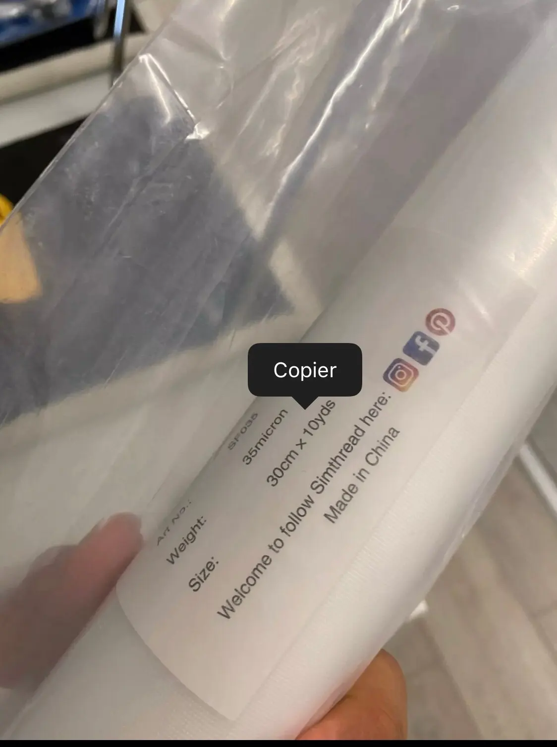 Simthread estabilizador de bordado lavado 35um transparente frío soluble en agua película de rellenado bordado rellenado 10 rollo de yardas