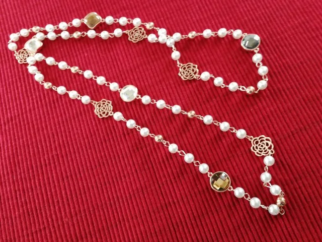 SINZRY, producto en oferta, collar largo de perlas de imitación de flor de Rosa de circonio cúbico para mujer, suéter, collar de invierno, regalo de Navidad