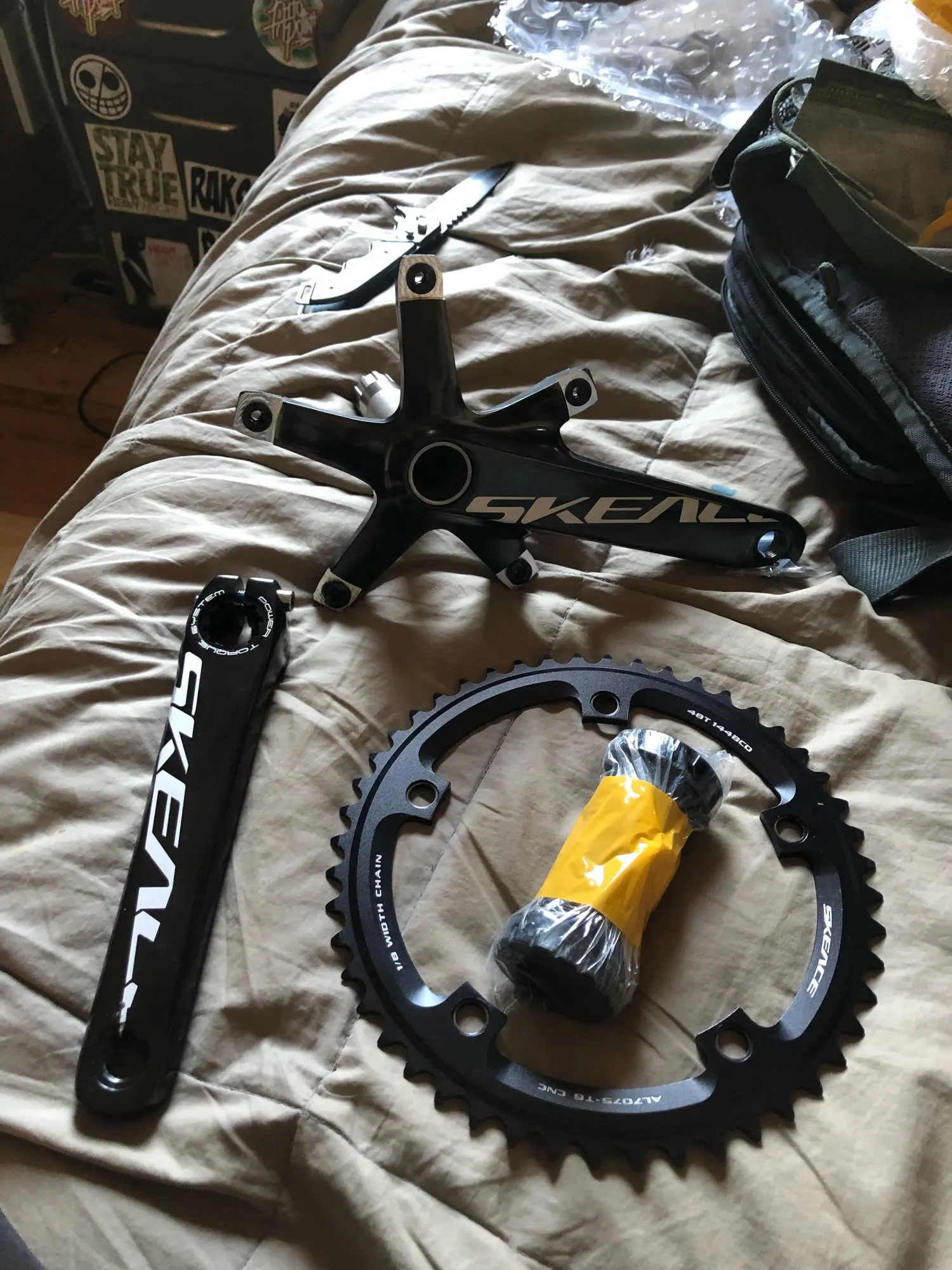 SKEACE-Juego de manivela de bicicleta, piñón fijo, cadena de aluminio, 144 BCD 48T, marcha única para bicicleta de carretera