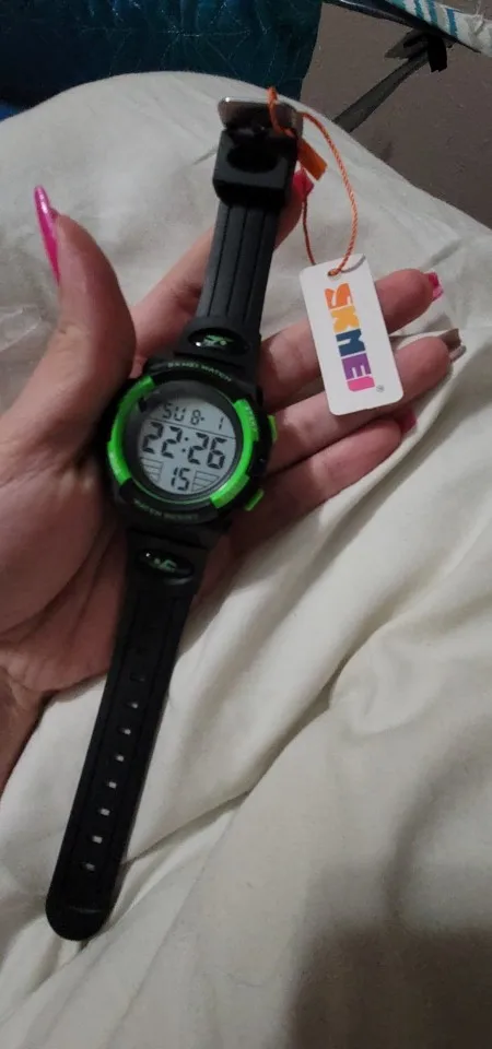 Buen producto,lo recomiendo cien por cien,a mi hijo le a encantado y las luces son una pasada,recomendable para un niño a partir de doce años ya que la esfera es un poco grande,queda precioso puesto en la muñeca y es color es fantastico.