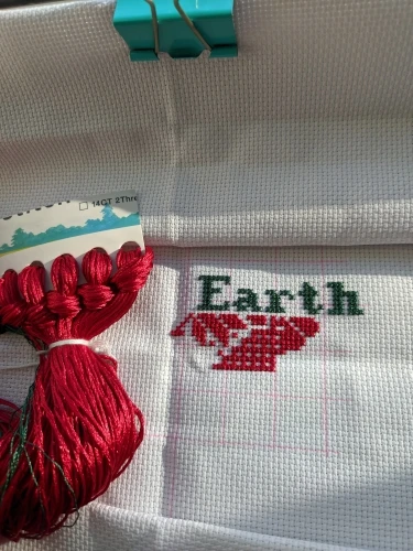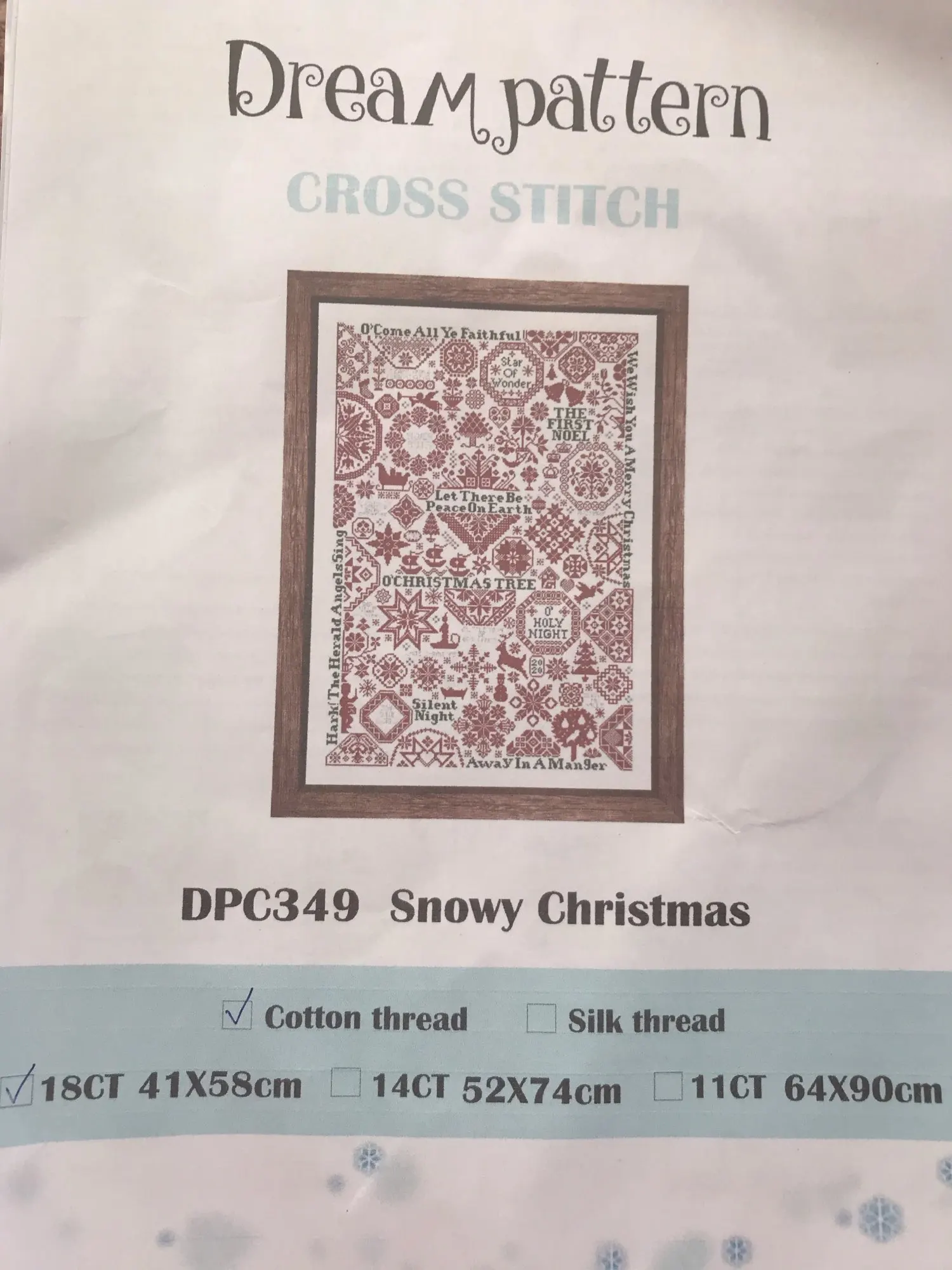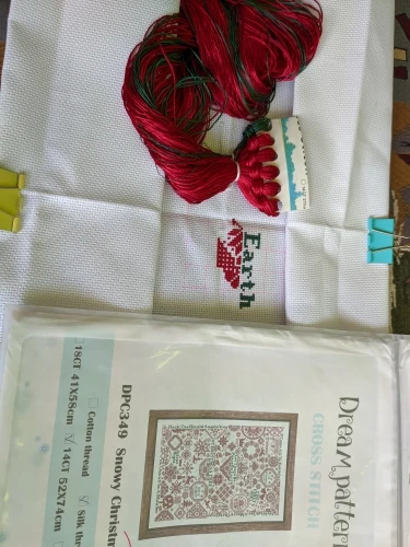 muy bonito, trae la tela rematada, dos agujas el hilo y el gráfico en papel tipo revista. muy satisfecha. recomiendo