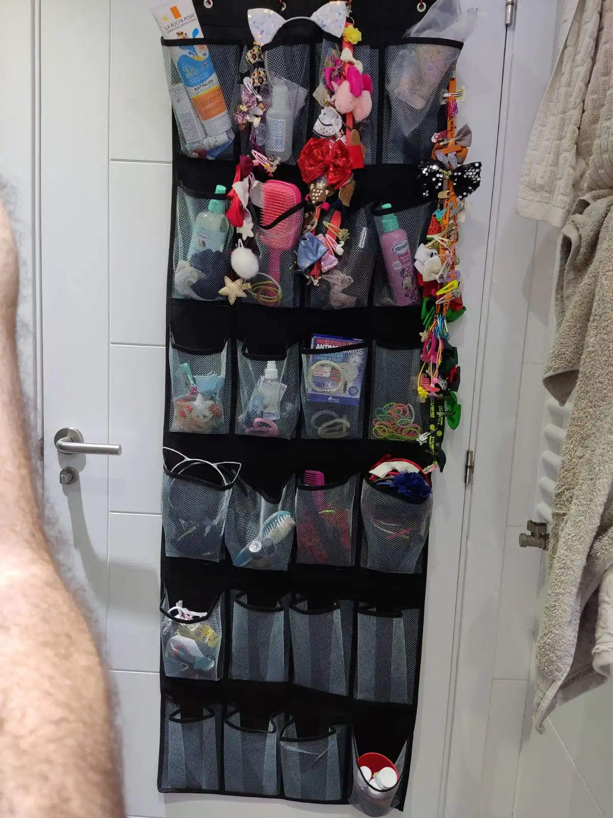Todo tal cual descripción,lo compré a sabiendas que no me valdría para la puerta aquí en España,pero ya compraré otros ganchos diferentes.No sé porqué no ponen para más medidas de puertas,no todas las puertas miden igual