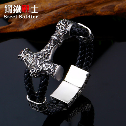 Soldado de acero 316L de acero inoxidable brazalete vikingo el martillo de thor mjolnir escandinavo nórdico de la joyería del brazalete