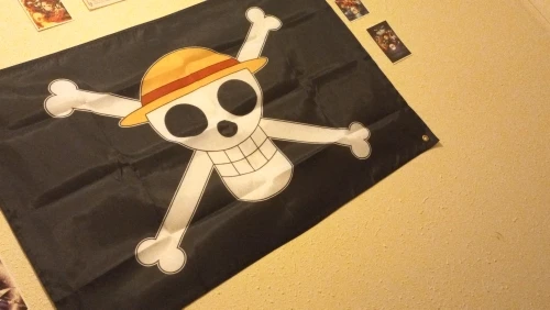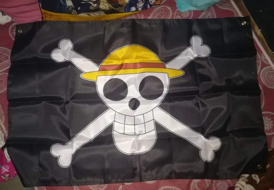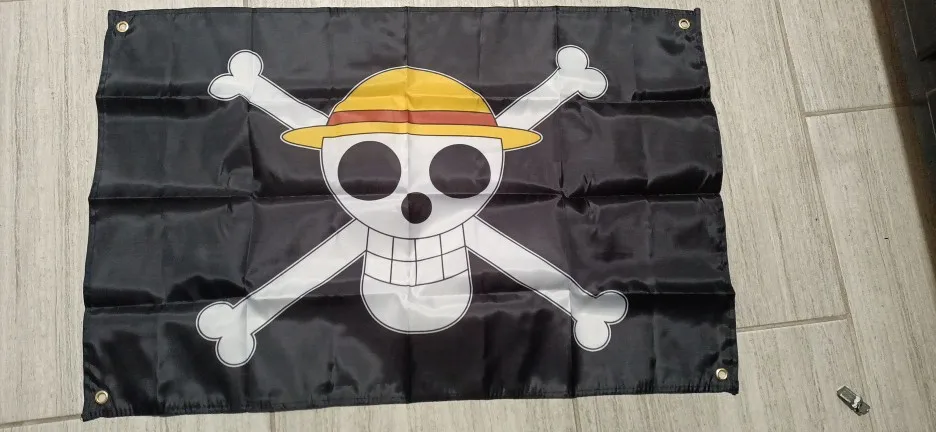 Sombrero de paja de una pieza, cartel de trompeta pirata, accesorios personalizados, animación de COSPLAY alrededor de la bandera de piratas, 3X2 pies, NN127