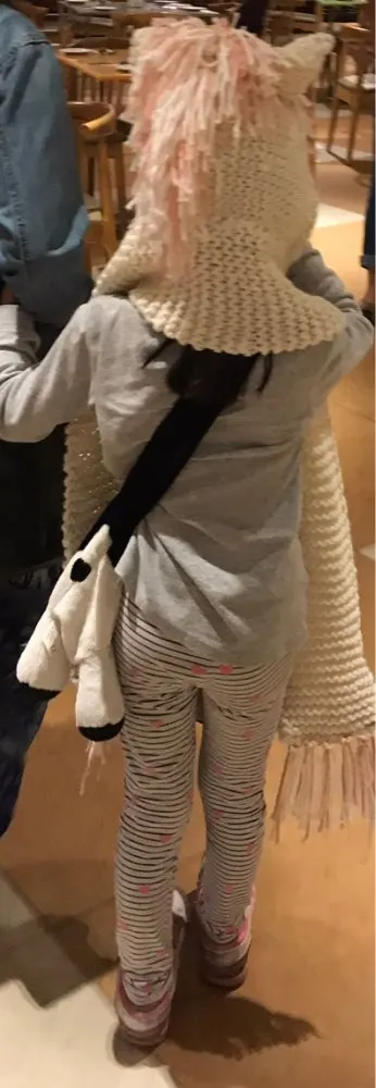 No queda como en las fotos, es bonito si, pero lo q es la bufanda es muy fina, y los ”pelos“ de la cresta están un poco...alborotados, y en los bolsillos con suerte te cabe un chicle. Pero es bonito aún así.