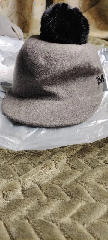 Sombreros de lana de fieltro que mantienen el calor para mujer, gorros de lana para mujer, sombrero Retro de caballero ecuestre, gorra de béisbol con bola de pelo de conejo para mujer 2022