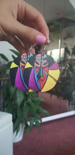 SOMESOOR-pendientes de gota de madera de Reina negra africana, joyas Afro bohemias estampadas de ambos lados, joyería colgante