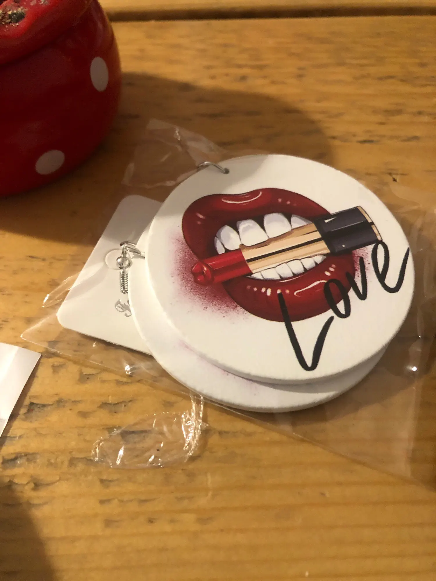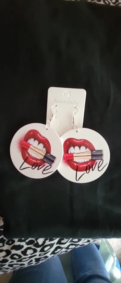 SOMESOOR-pendientes de gota de madera pintados con My pintalabios para mujer, aretes con estampado de dos lados, joyería colgante de madera VIntage para mujer