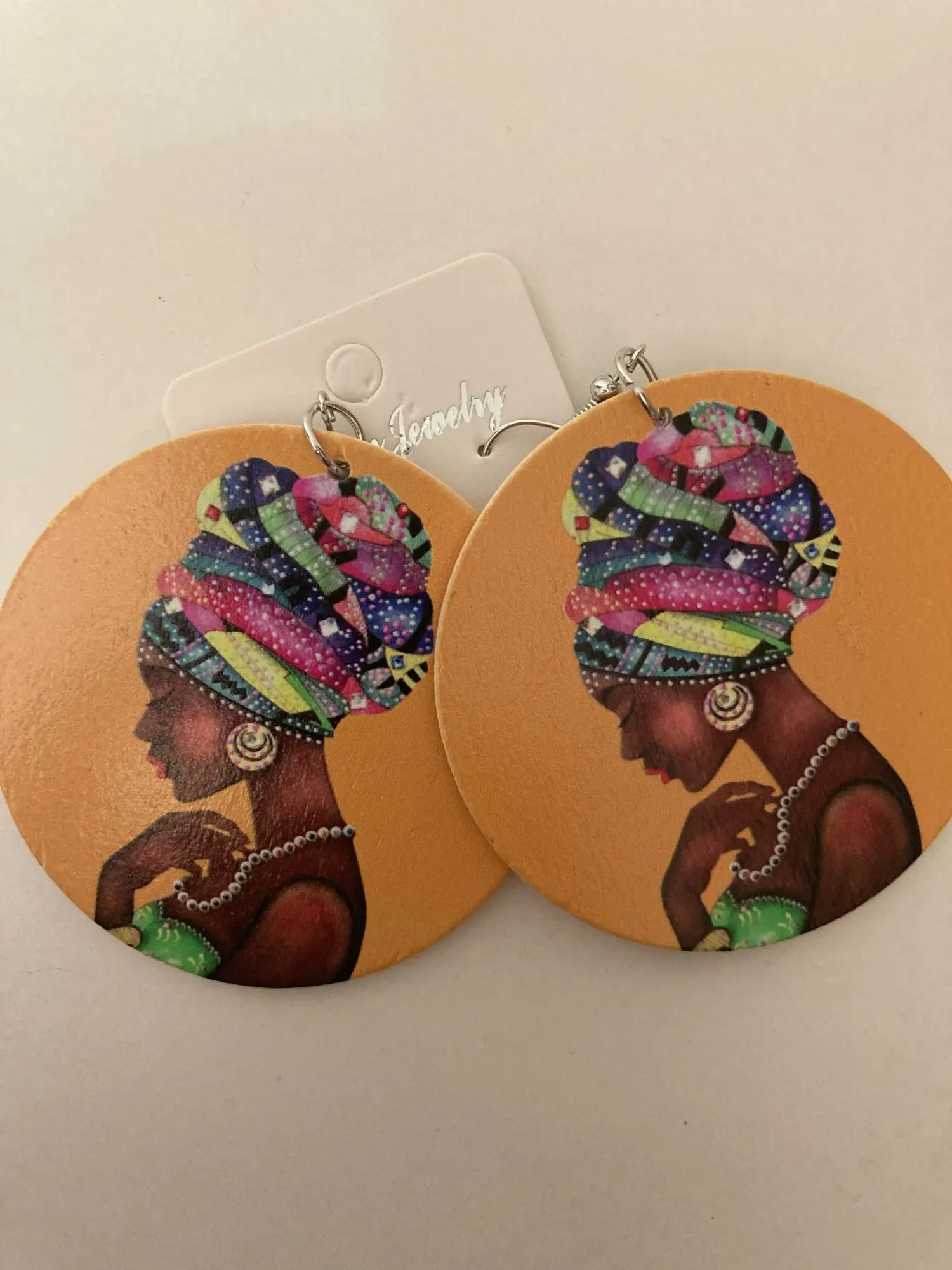 SOMESOOR Vinatge-pendientes de gota de madera para mujer, turbante africano, Boths étnicos, pintura lateral, joyería para regalos negros, 1 par
