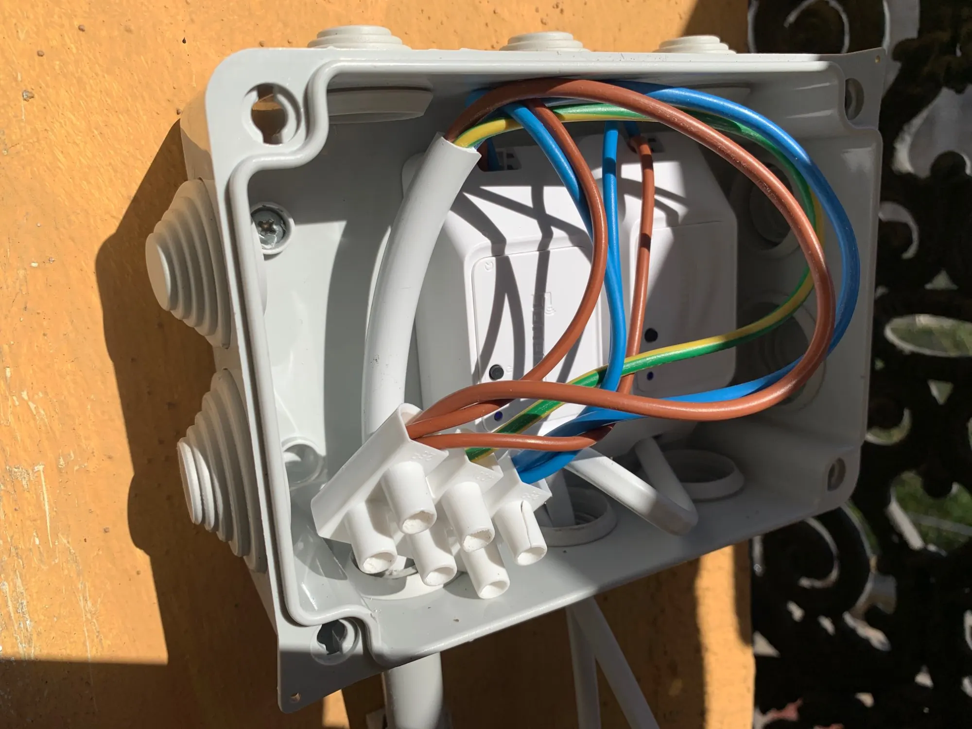 Perfecto. Conectados de forma muy sencilla y operativos. En esta ocasión, en el exterior, bajo protección, para el encendido del rótulo y focos de un comercio.