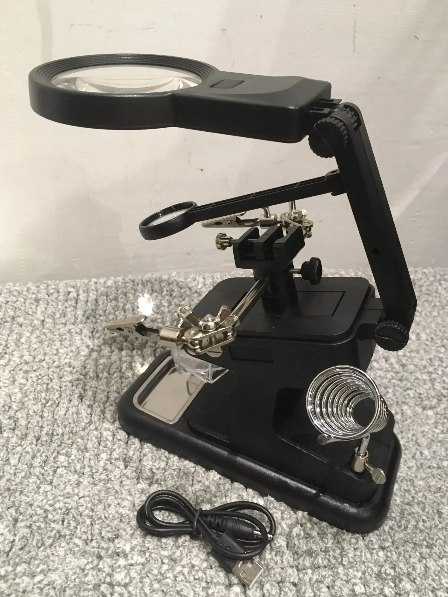 Soporte de hierro para soldar de tercera mano, herramienta de soldadura con gafas iluminadas, abrazadera de soporte de cocodrilo LED, ayuda a la reparación manual 16126