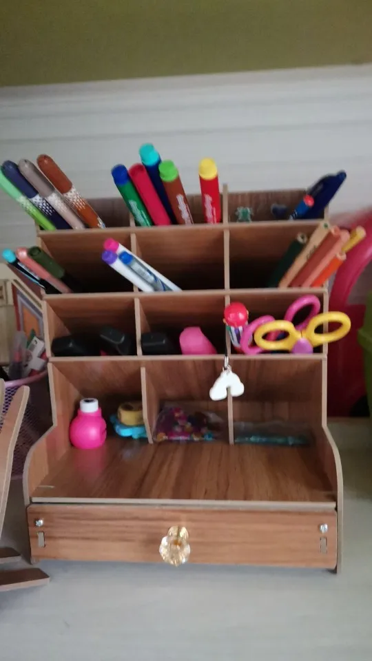 Soporte de madera para bolígrafo, organizador de lápices de escritorio, caja de almacenamiento estacionario de oficina, soporte de escritorio escolar, organizador de maquillaje para el hogar