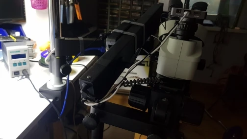 Soporte de soporte de abrazadera de articulación de dirección ajustable Universal brazo de 76mm soporte de Microscopio para Microscopio Trinocular ESTÉREO