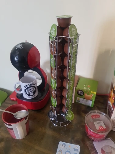 Perfecto, vino muy rápido y bien envuelto. Queda genial al lado de la cafetera y es muy resistente. Entran 8 cápsulas en cada espacio (en total 24). Muy recomendado, no pesa nada