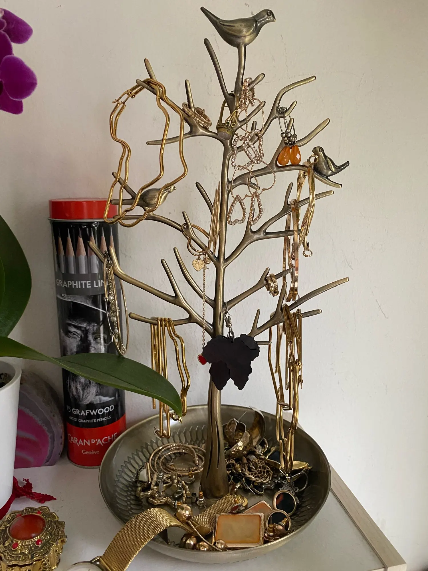 Soporte para presentación de joyería, 4 colores, árbol de pájaro, pendiente, collar, pulsera, estante, organizador de moda