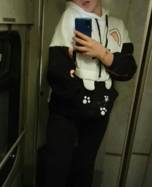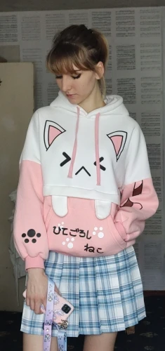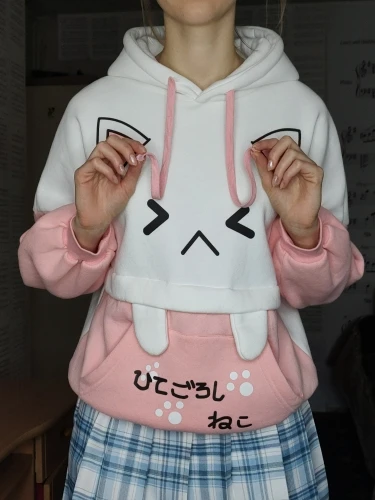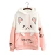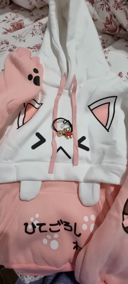 Sudadera con capucha Harajuku Kawaii para mujer, Oreja de Gato gráfico de manga larga en negro y rosa, suéter de Anime divertido para chicas adolescentes, sudadera Vintage 2022