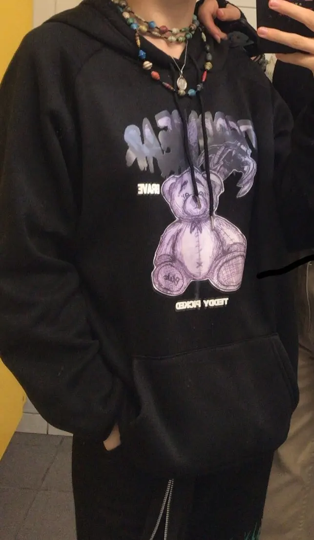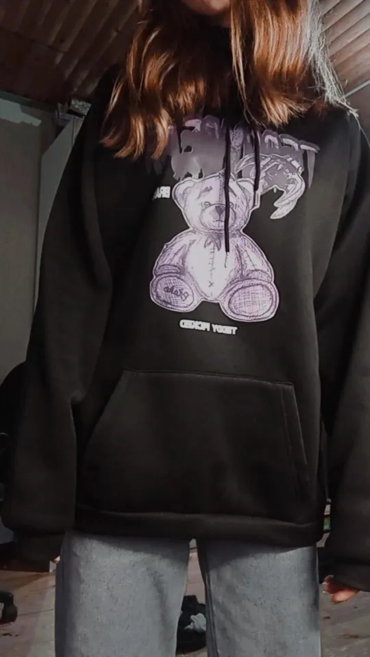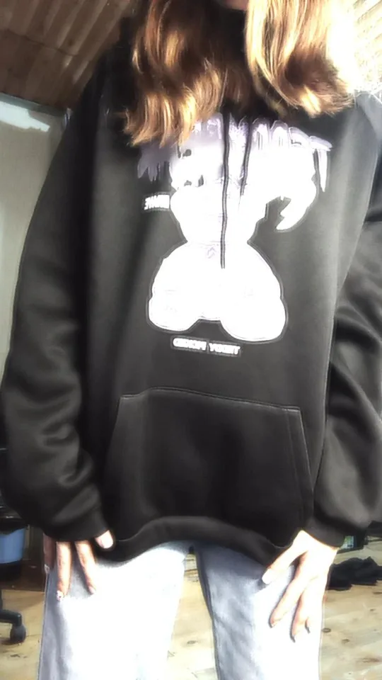 Sudadera con capucha harajuku para mujer, ropa con estampado de oso y Anime, Sudadera con capucha gótica para mujer, ropa de calle kawaii, Tops con capucha de manga larga para mujer